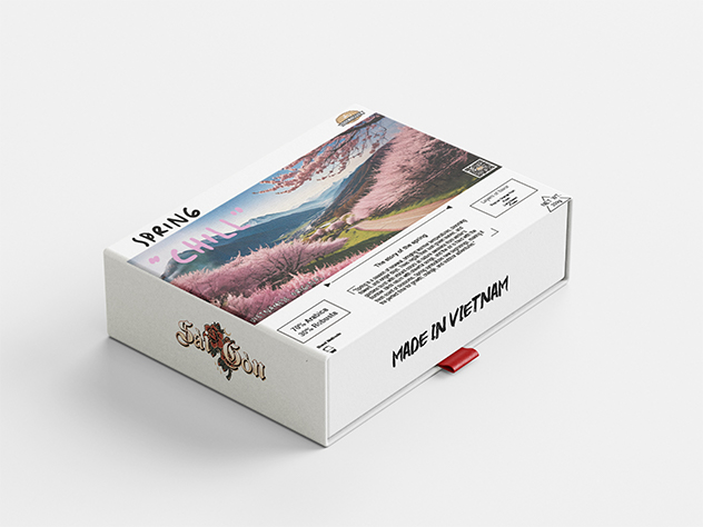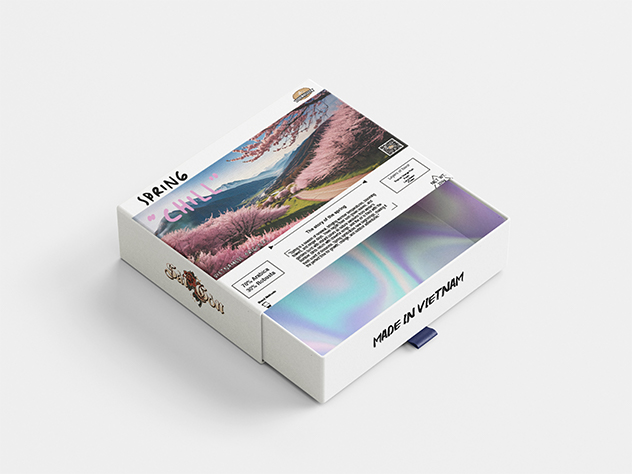 The result is a premium packaging concept that feels both minimal and high-end. A crisp white exterior and clean typography create strong clarity and shelf presence, while the iridescent interior delivers a luxurious “surprise” moment during unboxing. The bold “MADE IN VIETNAM” detail adds confident identity, and the structured layout keeps all information organized—making the final piece feel modern, polished, and retail-ready.